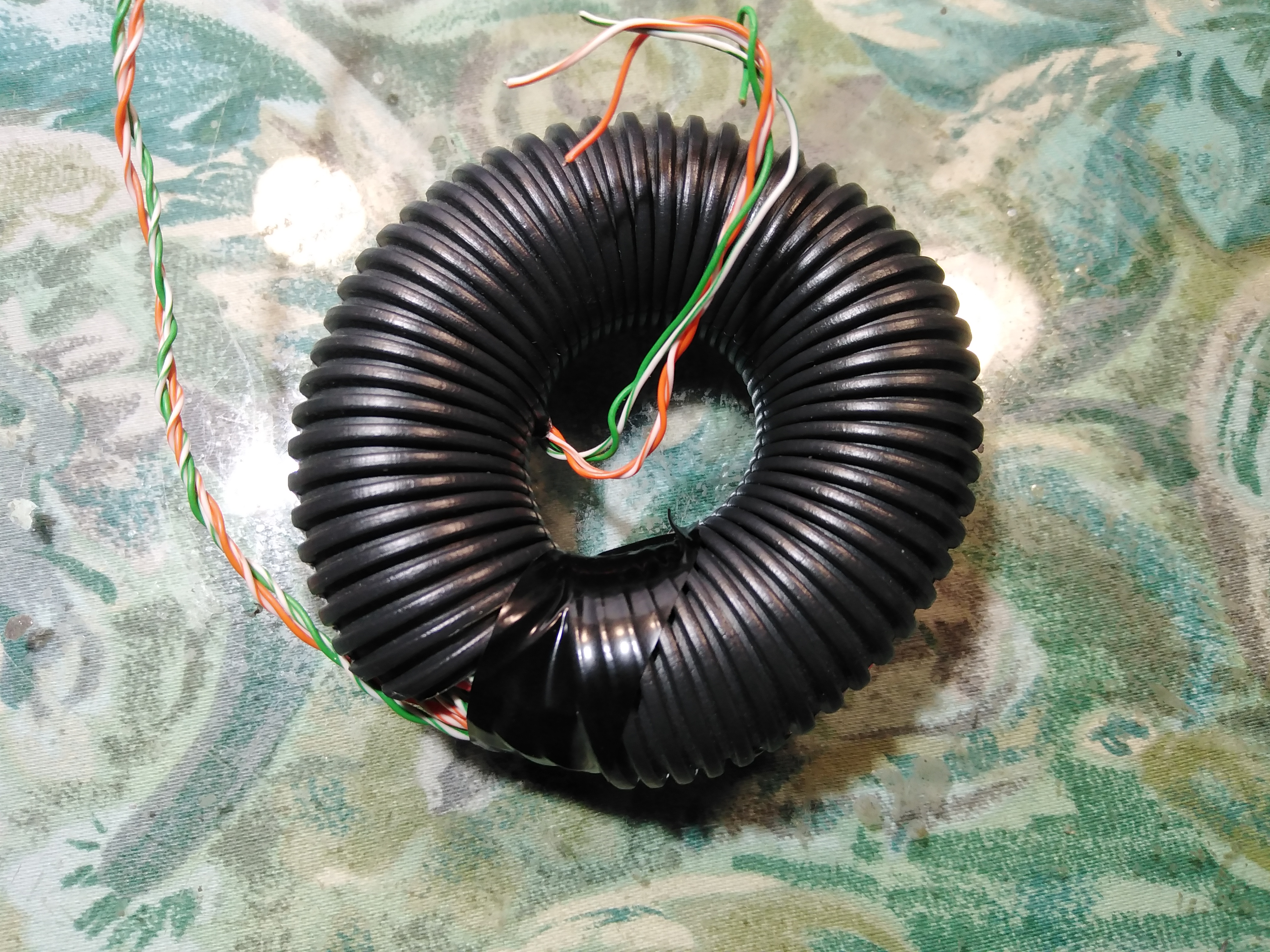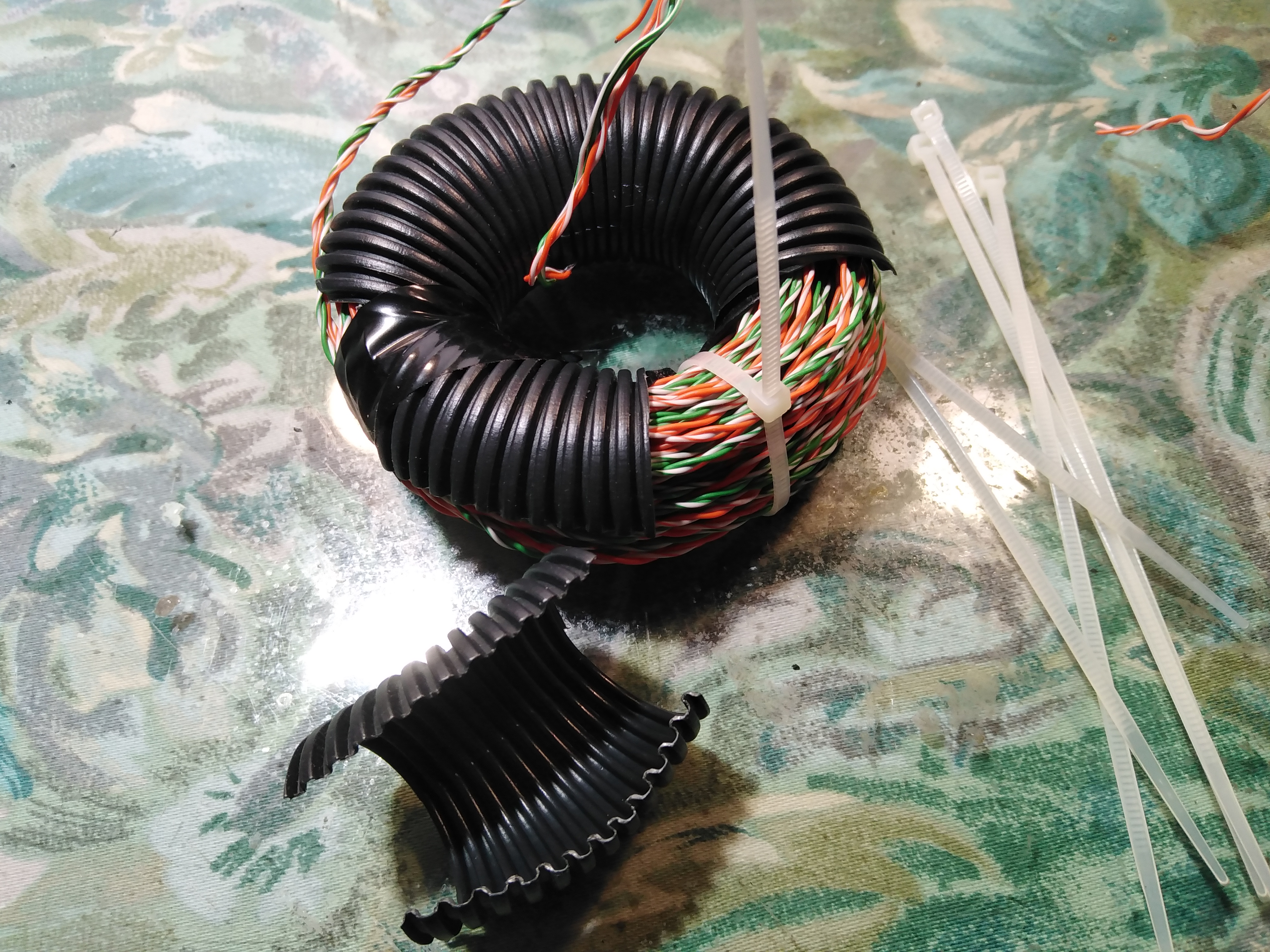 Для изготовления торов использую 12 метров медной витой пары, которую предварительно перематываю так, как это описано в видео на моём канале yukta.org на Ютубе.